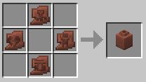 任意の壺の欠片(1~4個)とレンガ(レンガ1~3個)をクラフトテーブルの上下左右に4カ所配置