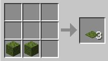 苔のカーペットは、1ブロックの高さの薄い緑のブロックで、床や地面に敷くことで自然な装飾を演出できます。