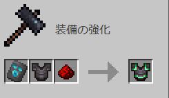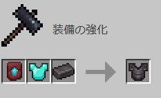 ネザライト強化を行うには、ネザライト強化用鍛冶型、強化したいダイヤモンド製アイテム、ネザライトインゴットを左から順に配置する。
