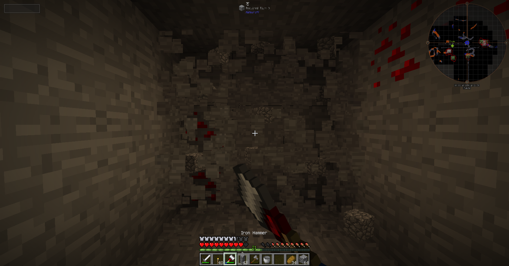 ハンマーはピッケルの上位互換で中心から3x3マスを一括で採掘します。