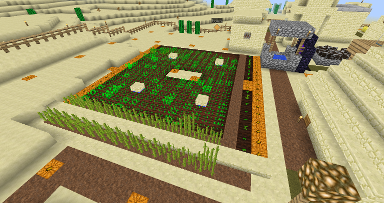 畑は、砂漠の村の土地をごっそりもらって作ってます。