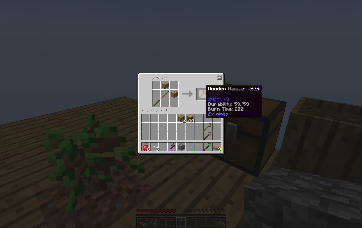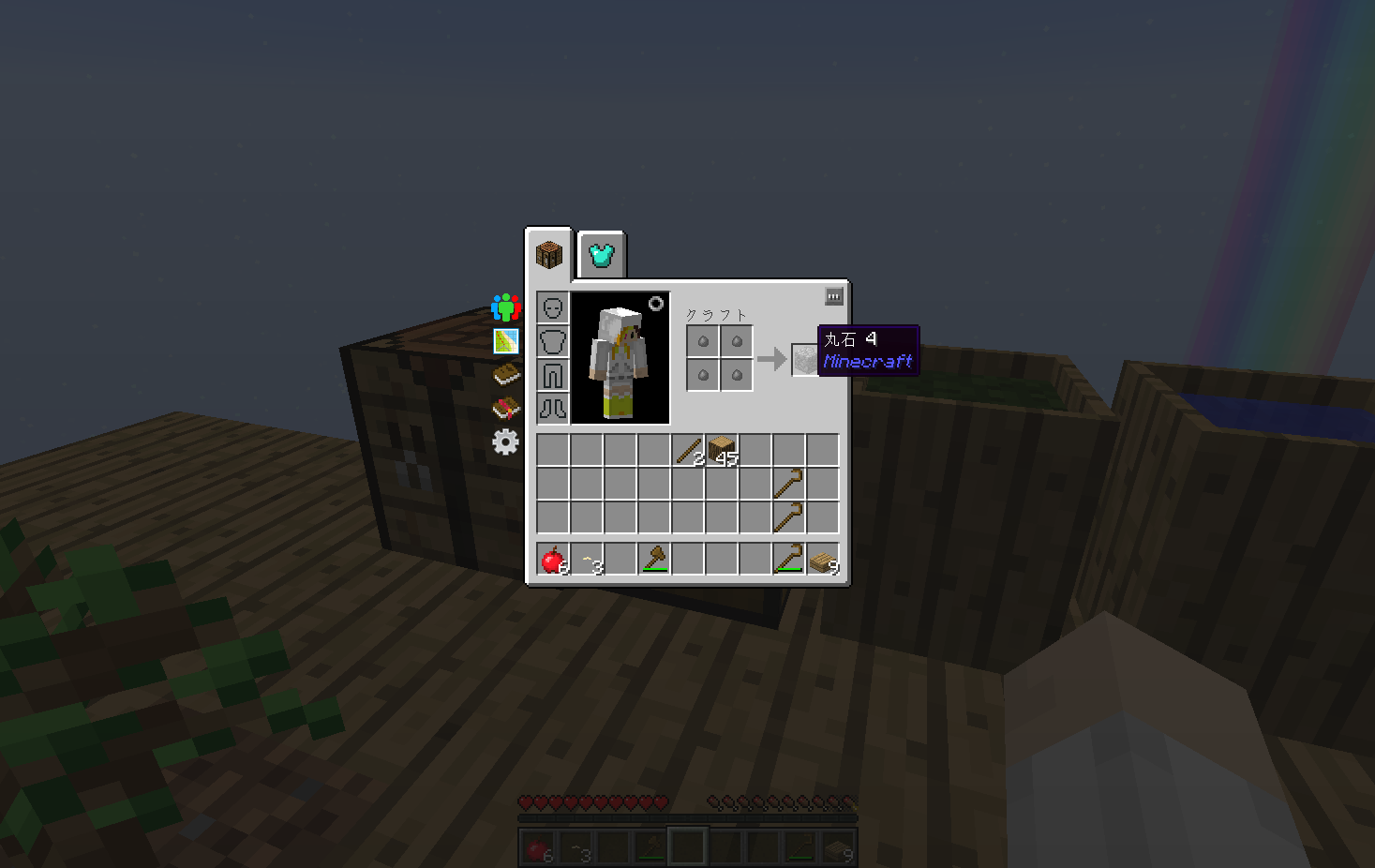 バレルに苗木8→石ころ入手→4つをクラフトで丸石