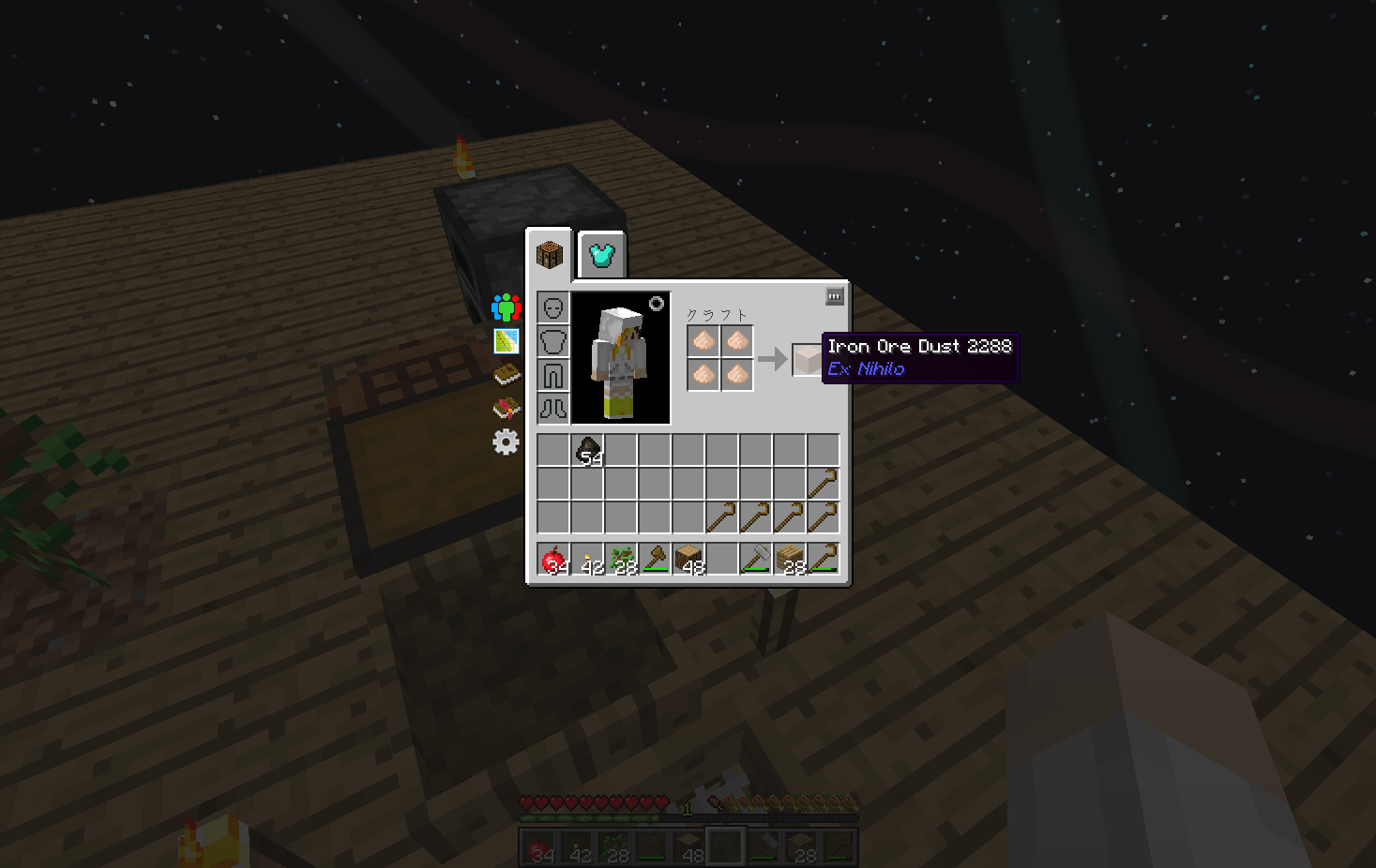 砂利からは、砕けた鉱石が入手でき、4つクラフトで製錬するとインゴットとして入手できます。
