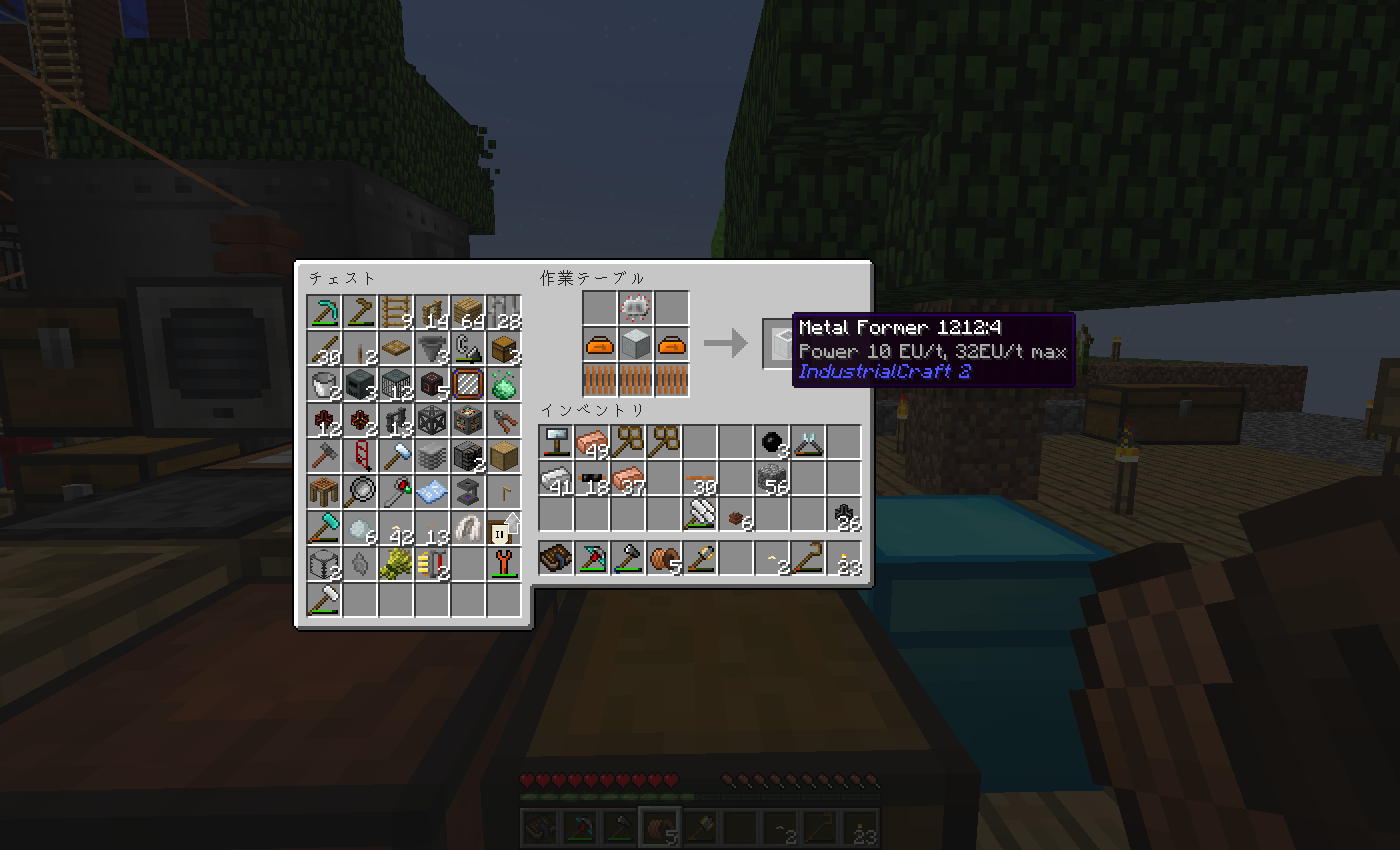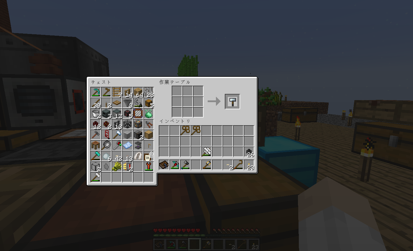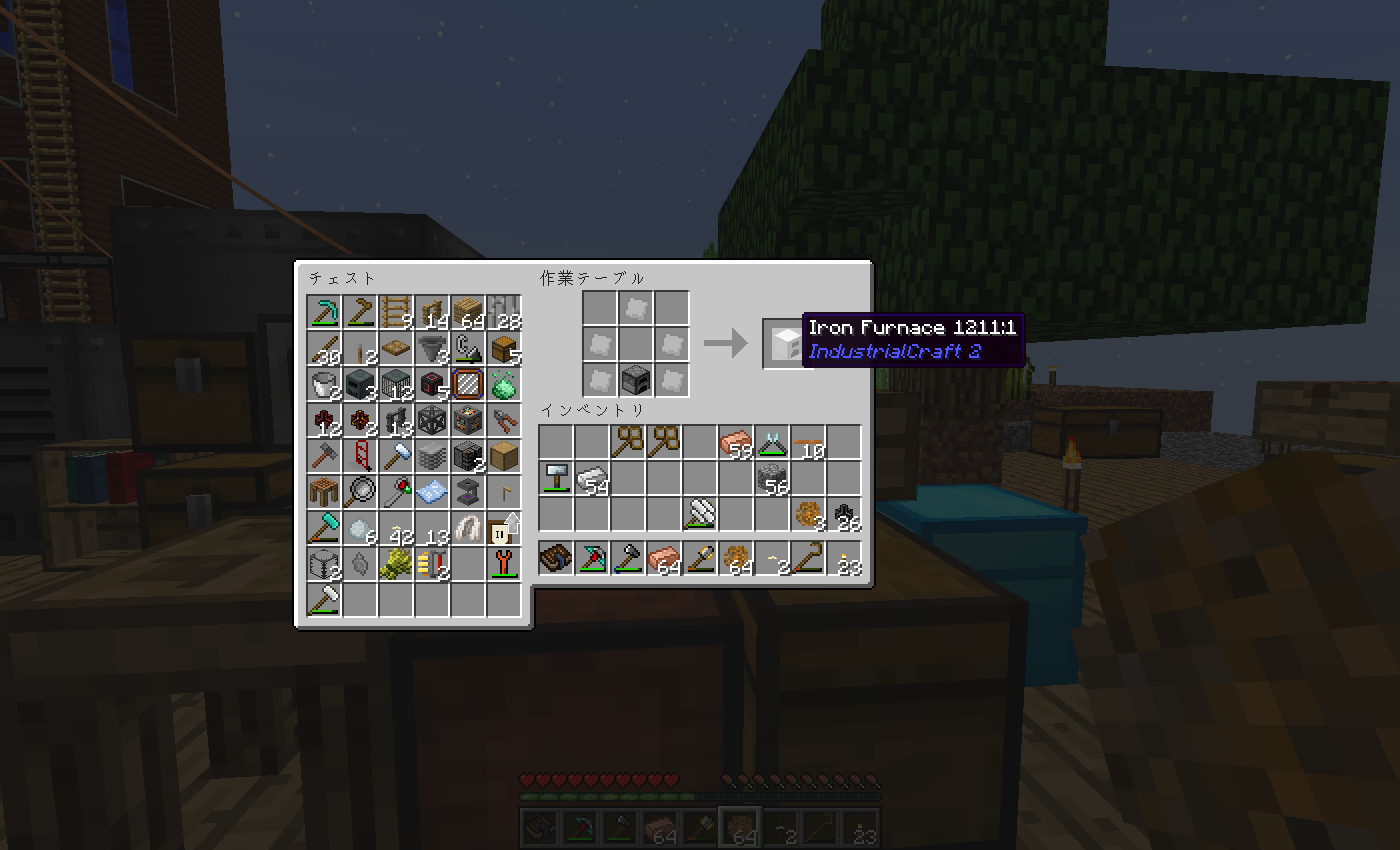 そんで、鉄インゴットをハンマーでプレートにして「鉄かまど」を作成!