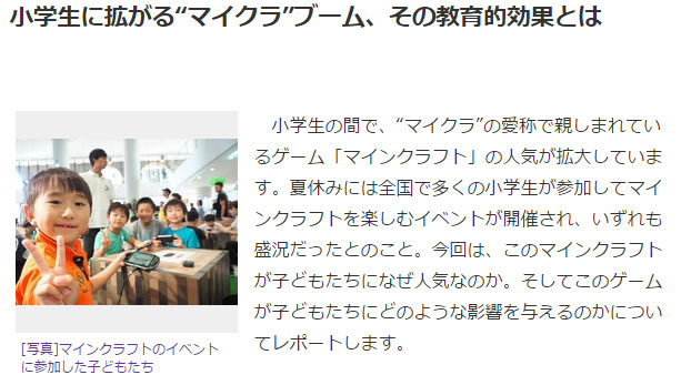 空前のマイクラブーム!小学生向けの教育でも取り上げられています。